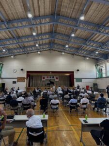 敬老の日、長森南小学校体育館にて 80歳になられた皆様に、まだまだ暑い中 お集まりいただき、敬老会が、開催されました。 戦後80年本日お集まりの皆様のご努力のおかげで 今の環境があります 感謝の思いで、ご挨拶させていただきました。 後半は、長森南のアーティスト マーサさんの演奏にて、楽しいひと時を過ごさせていただきました。