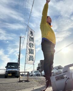 高田2の交差点の一角をお借り致しまして、ご挨拶させて頂きました。